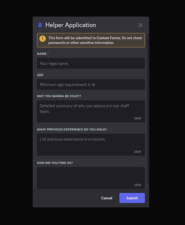 Formify is trusted by 2000+ servers, averaging thousands of forms a month handled and kept secure within our system!